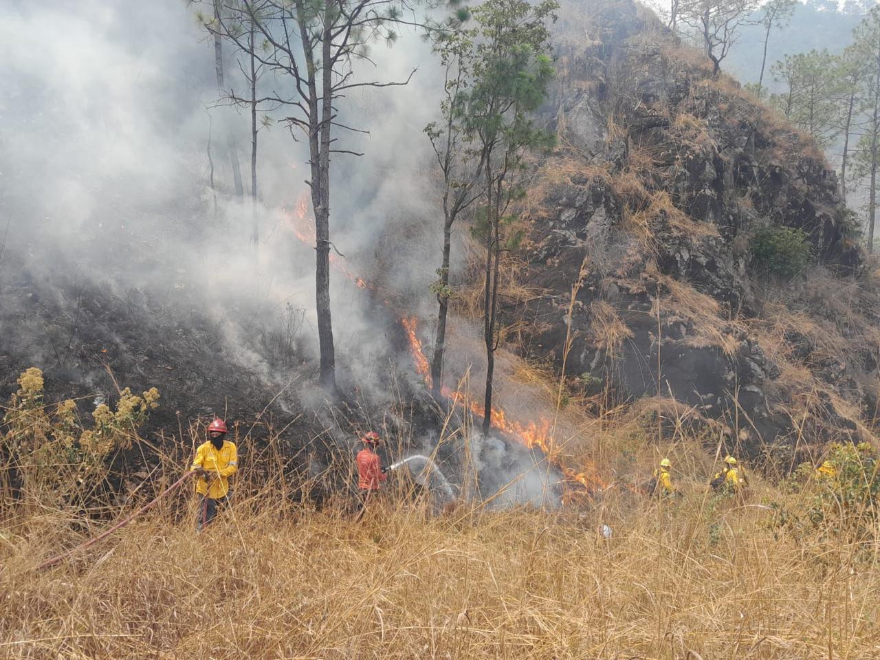 Este siniestro se originó durante la mañana de ayer viernes, siendo atendido de manera inmediata por brigadistas de esta secretaría, con el apoyo de la Comisión Nacional Forestal y otras instituciones de los tres órdenes de gobierno y grupos voluntarios, quienes este sábado de manera coordinada han reforzado las labores de combate al fuego.