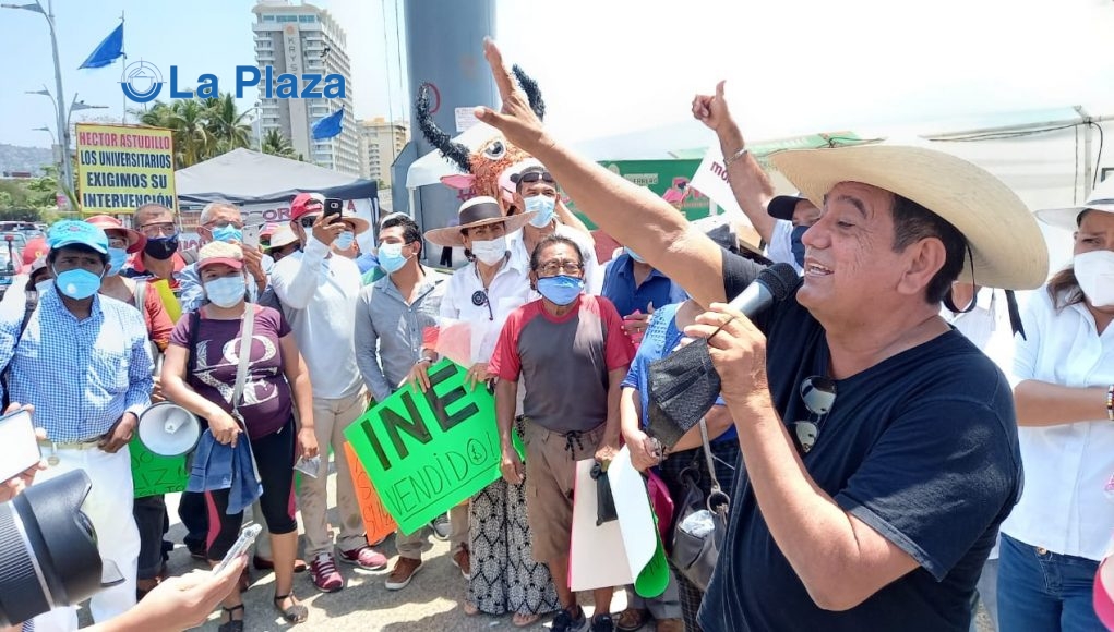 «Estamos en pie de lucha, estamos protestando por el atropello que el INE cometió en Guerrero», sentenció el morenista desde la protesta.