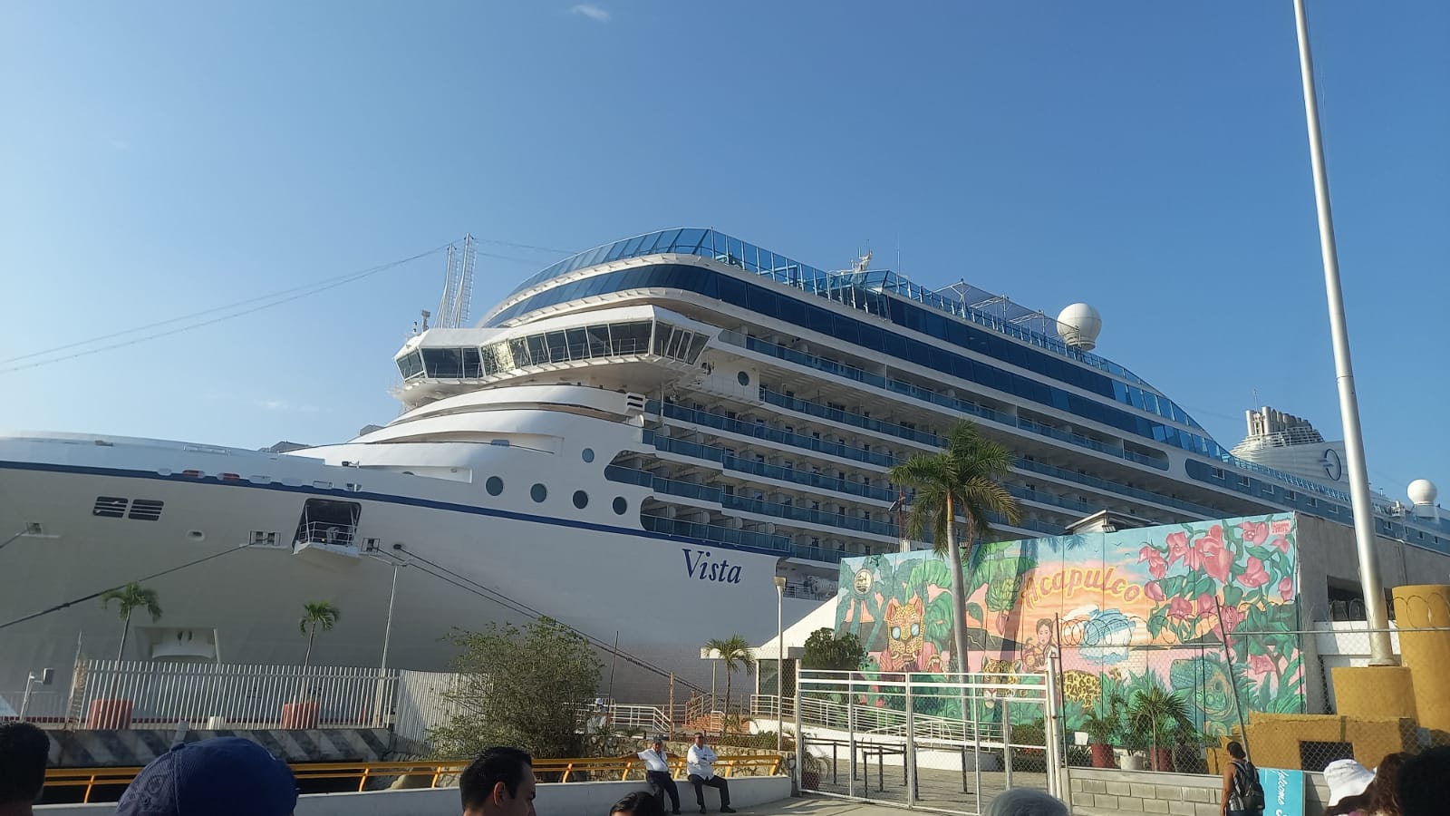 Acapulco, 26 de diciembre de 2025. Con mil 835 personas a bordo, entre pasajeros y tripulantes , este viernes hizo su arribo a Acapulco el crucero MS Vista, el quinto de la temporada y el último de este año 2025.